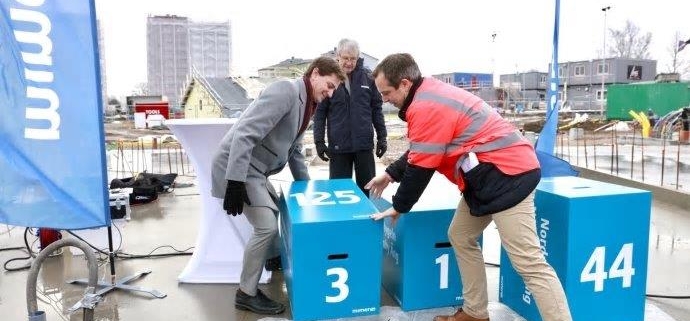 Den 26 januari togs det första spadtaget på fastigheten Nordporten på Nordanby Äng som vi bygger till Bostads AB Mimer. Det är en nyproduktion av ett lamellhus innehållande 44 hyreslägenheter fördelat på fyra våningar på Nordanby Äng i Västerås. I fastigheten kommer det att var tvåor och treor där lägenheterna i markplan får egen uteplats. Området kommer att präglas av ängs- och parkmiljö och möjlighet till att ha egna odlingar kommer att finnas.